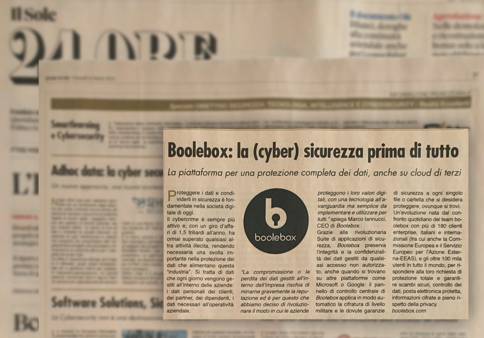 Boolebox su Il Sole 24 Ore: ”La (cyber) sicurezza prima di tutto”